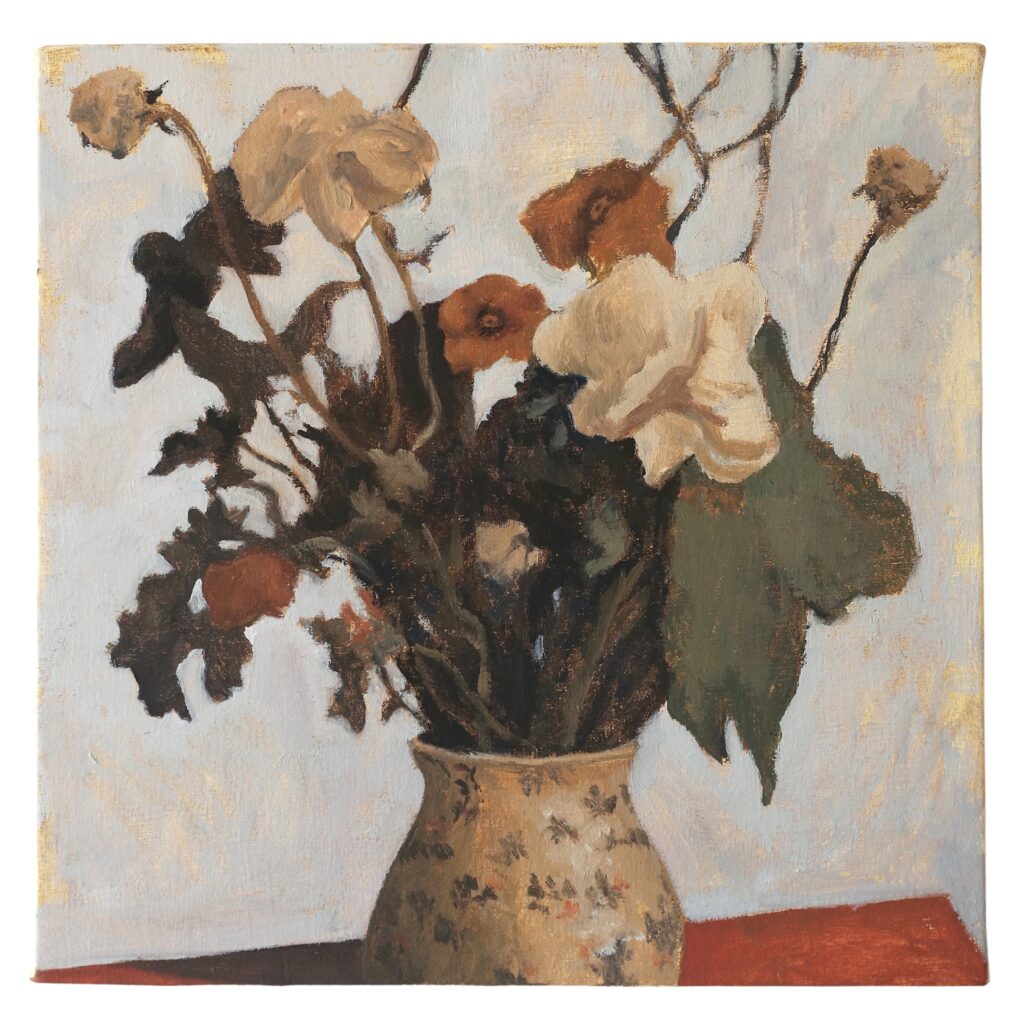 Objets isolés, fragments de scènes, figures ou compositions calmes forment des images où formes et objets sont disposés dans l’espace, saisis dans des situations simples et immobiles. Proches de la tradition de la nature morte tout en s’en éloignant, ces peintures proposent des images silencieuses où le quotidien apparaît légèrement déplacé.
