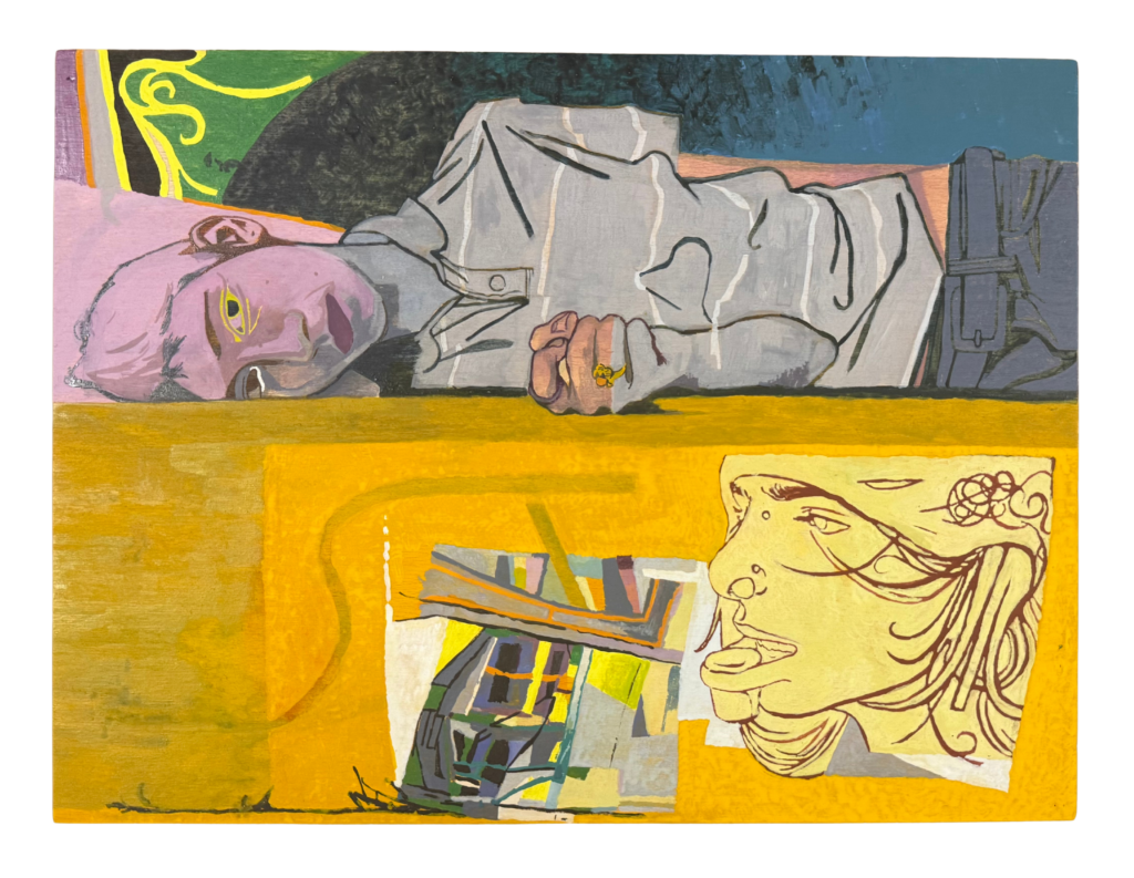 In dialogue with these abstractions, a series of portraits and domestic fragments unfolds with a quieter intensity. Francisce creates like a DJ: their works reveal bodies in latency or suspension, often caught in transitional states—lying down, seated, absorbed in a gesture or a pause, situated in spaces of passage, labor, or intimacy. These figures appear engaged in discreet, almost ritual choreography.